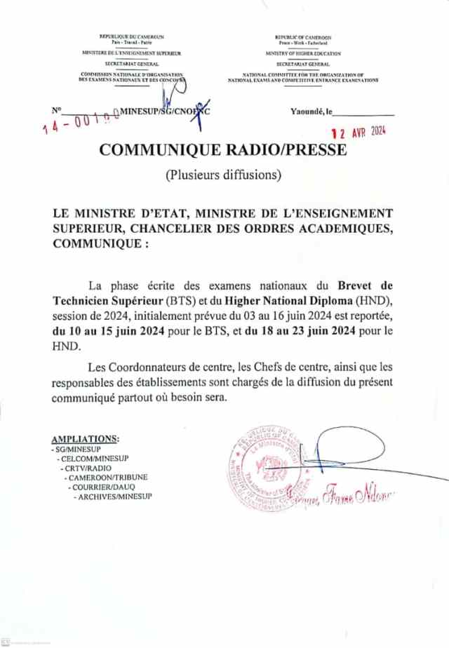 A LA UNE ACTUALITES FORMATION PROFESSIONNELLE BTS 2024. il aura lieu du 10 au 15 juin La Rédaction avril 14, 2024 1 min read en salle d'examen Il était initialement prévu du 3 au 16 juin. Source/Minsup Similaire Tags: BTS 2024 la nouvelle date du BTS au Cameroun en 2024 Continue Reading Previous: France-Prepa 2024 : le concours c’est le 3 maiNext: HND 2024. It’s taking place from june 10 to 15. Laisser un commentaireAnnuler la réponse.